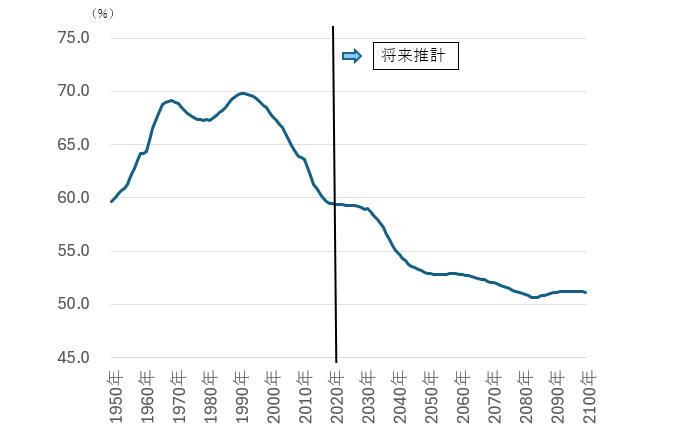 (参考3)生産年齢人口比率の推移(1950~2100年)