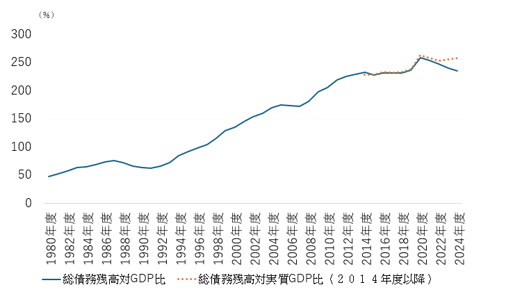 (参考2)日本の一般政府(国および地方政府)総債務残高の対GDP比推移