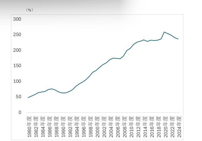 借金を永久に増やし続けることはできない。債務残高比率は、借金の規模を国際比較する上では有用な指標だが、そのプラスマイナスをもって、安心できるような指標ではない。ちなみに、日本と同様に、約80年前、敗戦と超インフレを経験したドイツの現在の債務残高比率は、63%(2024年)と、日本(同236%)の約4分の1にとどまる。